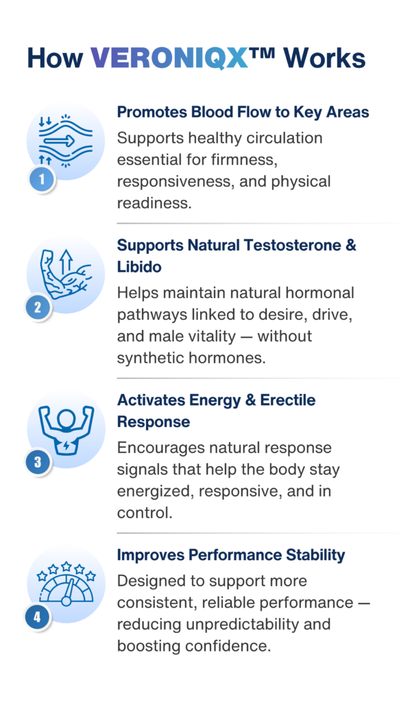 VERONIQX™ is formulated with carefully selected performance-support ingredients designed to help optimise blood circulation, enhance responsiveness, and support sustained stamina.